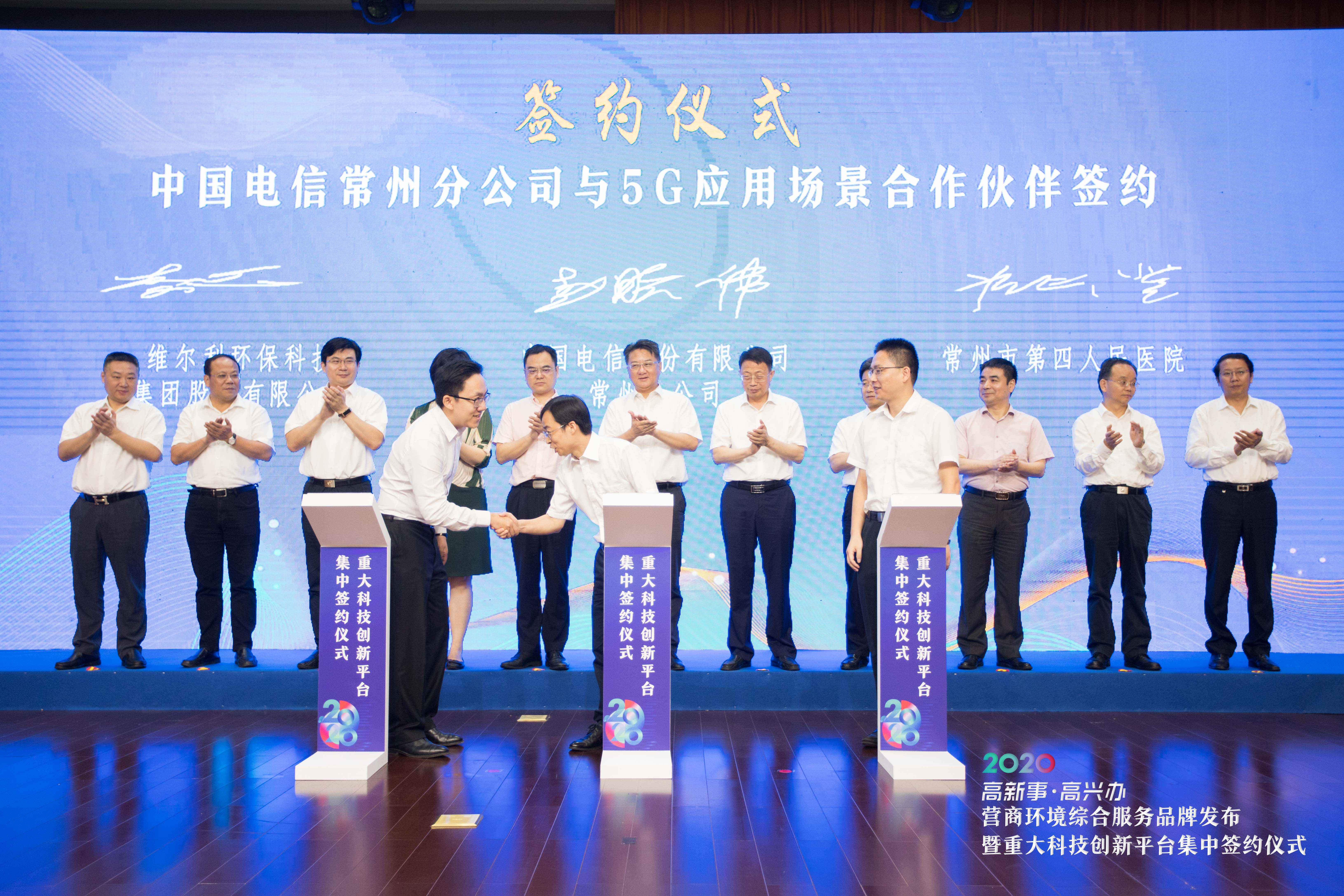 7月18日上午,在常州國家高新區舉辦的營商環境綜合服務品牌發布暨重大科技創新平臺集中簽約儀式上,維爾利環保科技集團股份有限公司(以下簡稱:維爾利集團)與中國電信股份有限公司常州分公司(以下簡稱:常州電信)簽訂了企業5G+工業互聯網項目建設及應用戰略合作協議。
