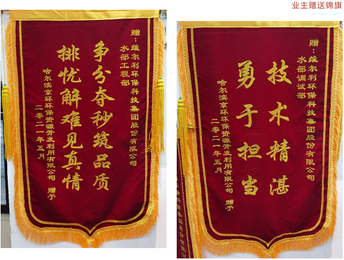 “哈爾濱京環(huán)環(huán)保資源開發(fā)利用有限公司廢水處理站技術(shù)改造項目”處理規(guī)模為600t/d,主體工藝路線為“除渣、絮凝沉淀+厭氧+膜生物反應(yīng)器(MBR)”,維爾利集團(tuán)負(fù)責(zé)外置式MBR系統(tǒng)改造設(shè)計。在天氣惡劣、土建延遲交安的情況下,集團(tuán)項目團(tuán)隊勇?lián)厝危茖W(xué)組織、精心部署,順利完工,業(yè)主方特贈錦旗表示肯定。